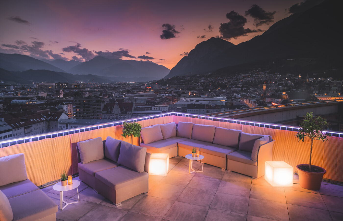 Mein Tipp für die perfekte Auszeit in Österreich: In einem der höchsten Gebäude der Stadt genießen Gäste des ADLERS Lifestyle-Hotel Innsbruck das Panorama der Tiroler Bergwelt von jedem Zimmer sowie wie von Restaurant und Bar. So hat sich die ADLERS Bar im 12. Stock zum Szenetreff etabliert. Das Restaurant „weitsicht“ lädt mit Interpretationen regionaler und internationaler Gerichte Genießer ein. Im Wellness-Bereich wird bei Sauna und Massage entspannt, als Highlight in der 13. Etage gilt die Havanna Rooftop Bar für Feiern und Events.