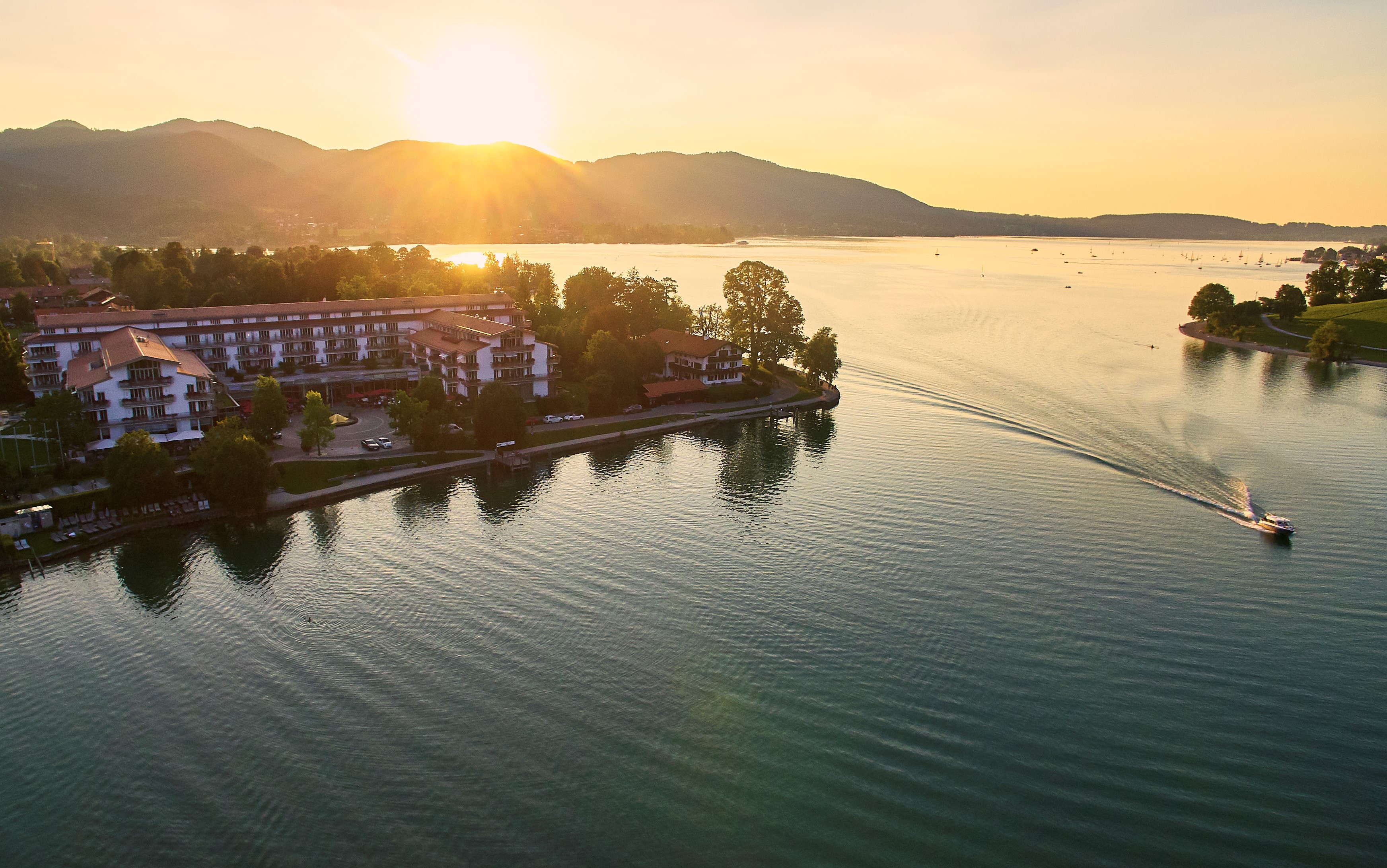 Auszeit gefällig? Entdecke jetzt das Althoff Seehotel Überfahrt in Rottach-Egern bei München – deine Wellness- und Gourmetoase direkt am Seeufer. 53 Suiten und 123 Zimmer bieten dir einen fantastischen Blick auf den Tegernsee oder die Voralpen. Genieße Entspannung pur auf 3.000 Quadratmetern im 4 elements spa by Althoff und erlebe die vielfach ausgezeichnete Kulinarik in einem der 5 Restaurants. Die ausgezeichnete italienische Küche im Restaurant Il Barcaiolo, das Beste der Alpenregion in der Egerner Bucht, entspannte Hüttenatmosphäre in der Fährhütte14 und die traditionellen Schmankerl in der Bayernstube lassen keine Wünsche offen. Als besonderes Highlight erwartet dich im Gourmetrestaurant Überfahrt regionale Verbundenheit mit Blick in die Welt unter der Leitung von Spitzenköchin Cornelia Fischer. Ob romantische Tage zu zweit oder Wellness-Wochenende: Es gibt viele gute Gründe, sich im mehrfach ausgezeichneten Elegant Nature Resort Seehotel Überfahrt verwöhnen zu lassen.