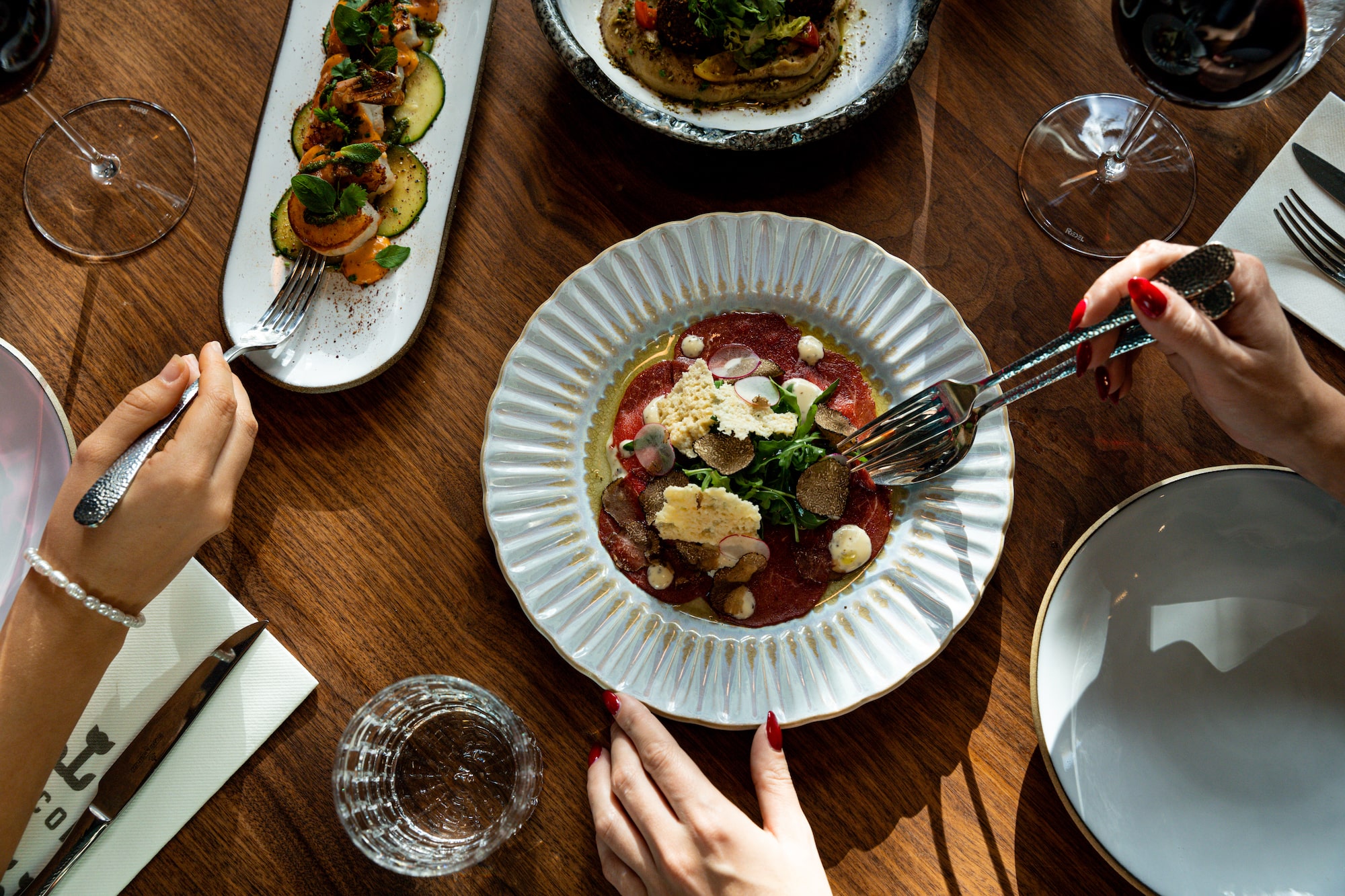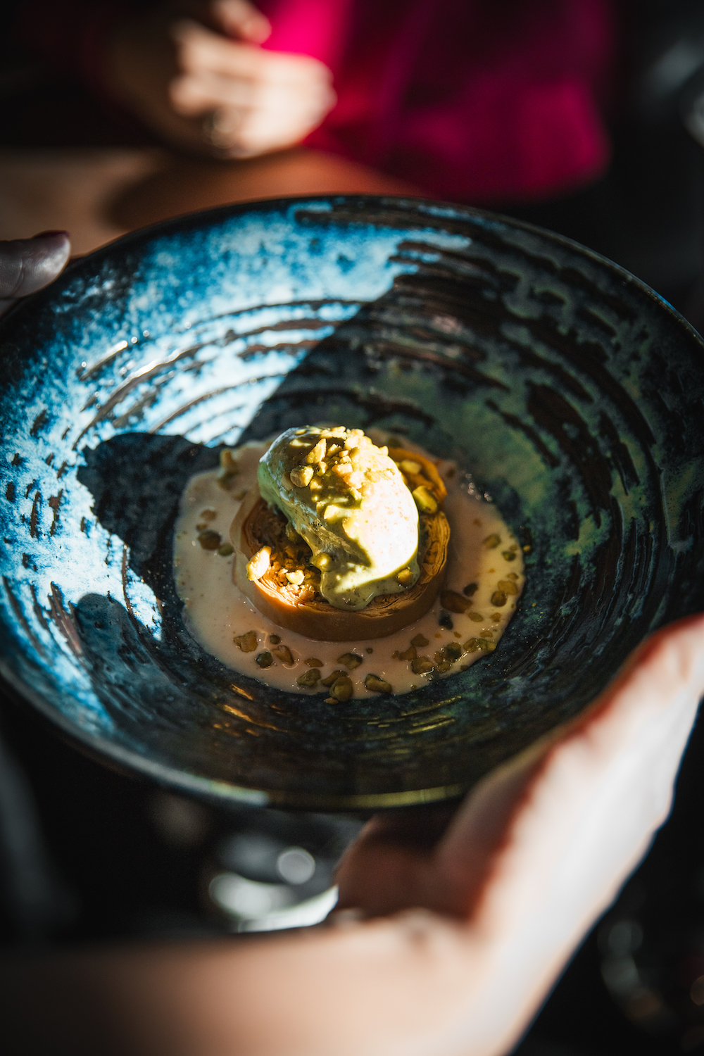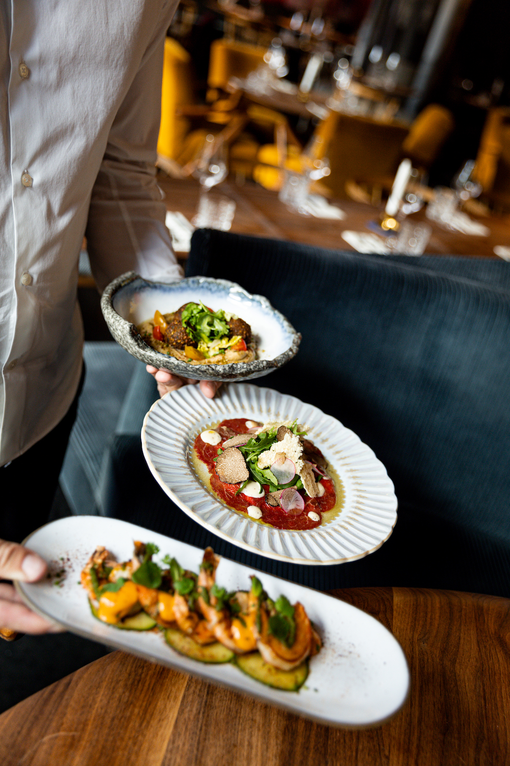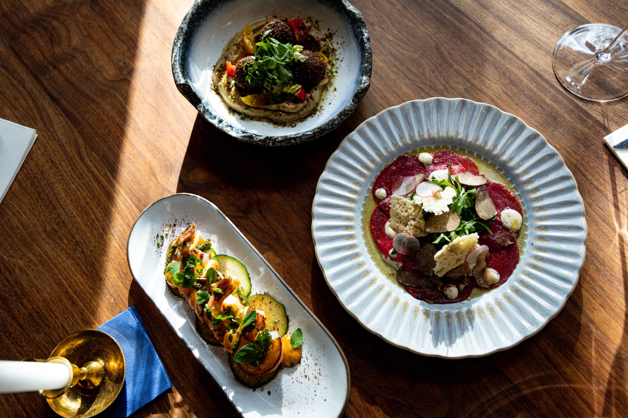 Unsere Karte zeichnet sich durch eine Auswahl an zeitlosen Favoriten aus, die mit Einflüssen aus dem Mittelmeerraum und dem Orient verfeinert werden. Besonders schön finde ich es, wenn sich unsere Gäste entscheiden, Gerichte zum Teilen zu bestellen. Das schafft eine tolle Atmosphäre, fördert die Kommunikation und man kommt sich direkt näher. Wenn man gemeinsam aus einem Humus-Topf das Brot dippt, entsteht oft eine Freundschaft.